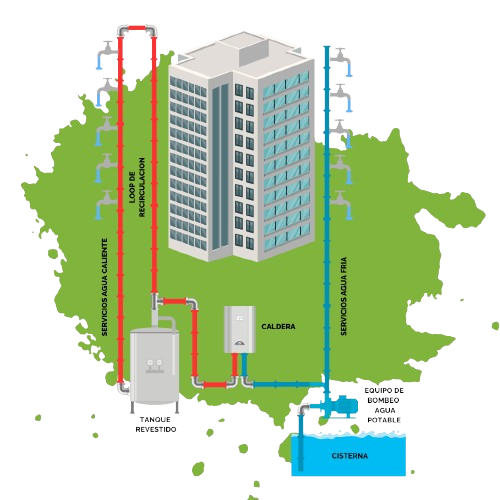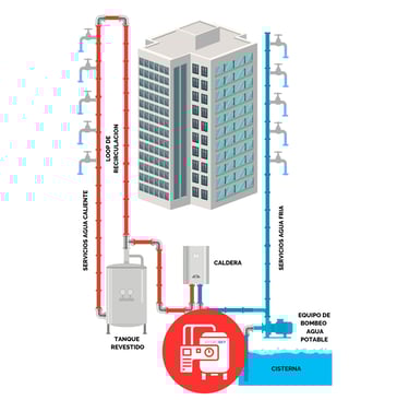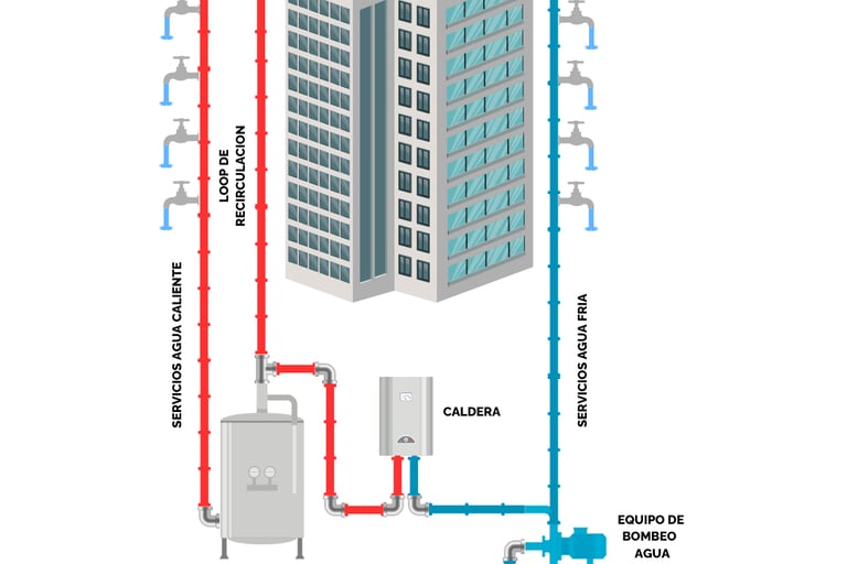 Un sistema de agua caliente central puede generar un ahorro de energía de hasta un 30% a 50% en comparación con sistemas individuales de calefones o calentadores eléctricos.